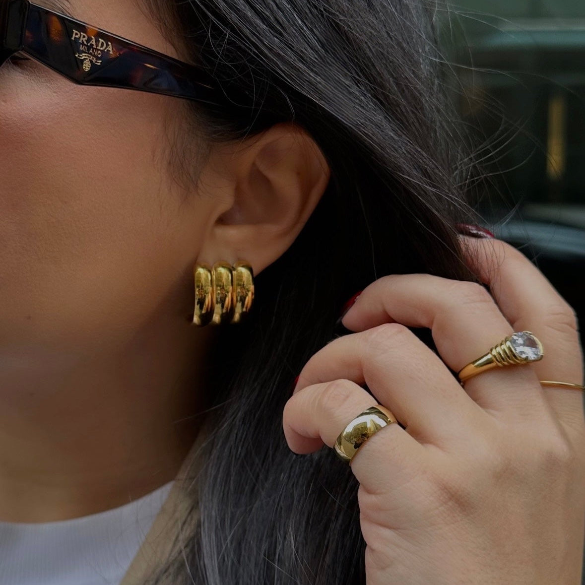 Bold rectangle earrings available in stainless steel and 18k gold plated.
